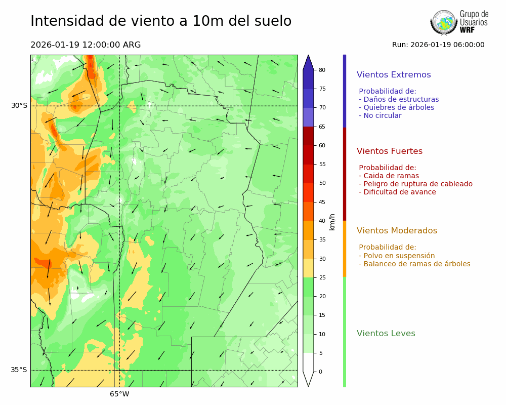 • Intensidad máxima: 20.09 km/h (19/01/2026 17hs.)