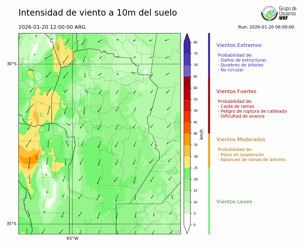 • Intensidad máxima: 18.31 km/h (20/01/2026 18hs.)