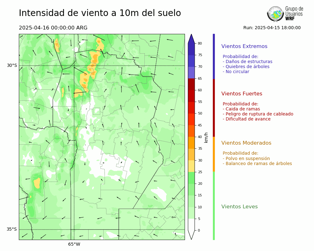 • Intensidad máxima: 14.67 km/h (16/04/2025 11hs.)
