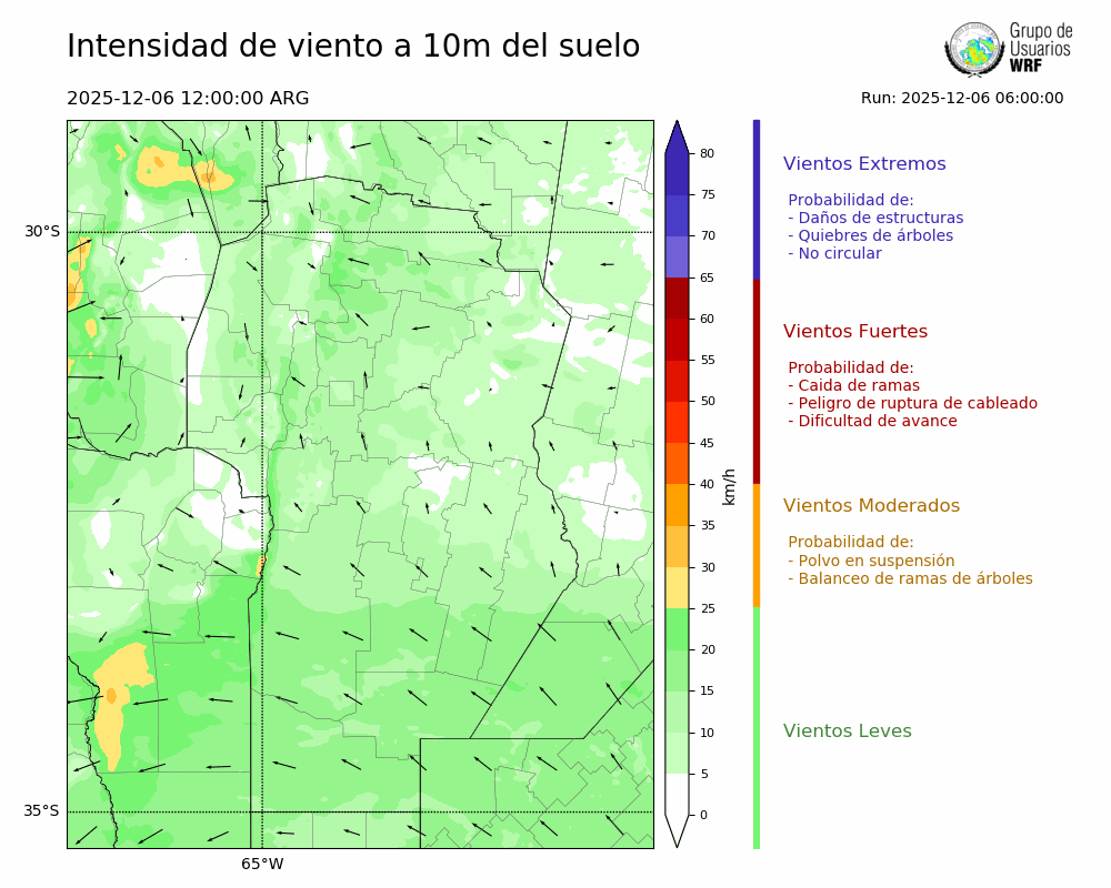 • Intensidad máxima: 22.82 km/h (06/12/2025 19hs.)