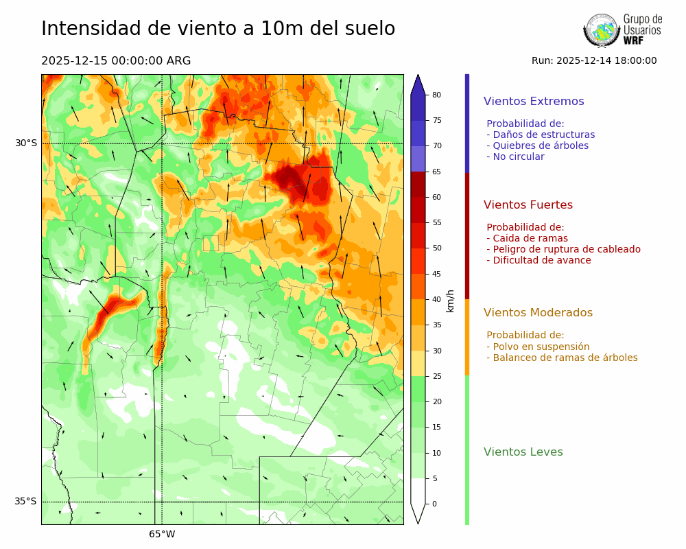 • Intensidad máxima: 25.74 km/h (15/12/2025 02hs.)