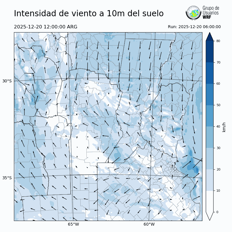 • Intensidad máxima: 13.96 km/h (20/12/2025 13hs.)