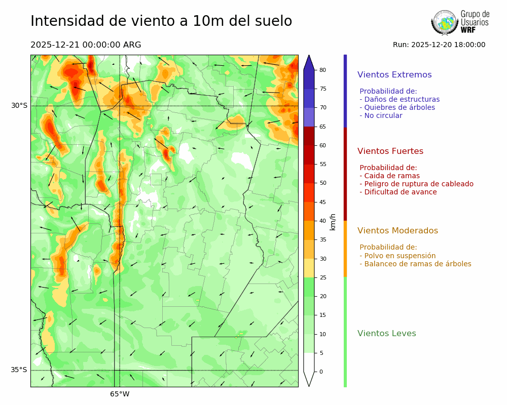 • Intensidad máxima: 16.57 km/h (21/12/2025 00hs.)