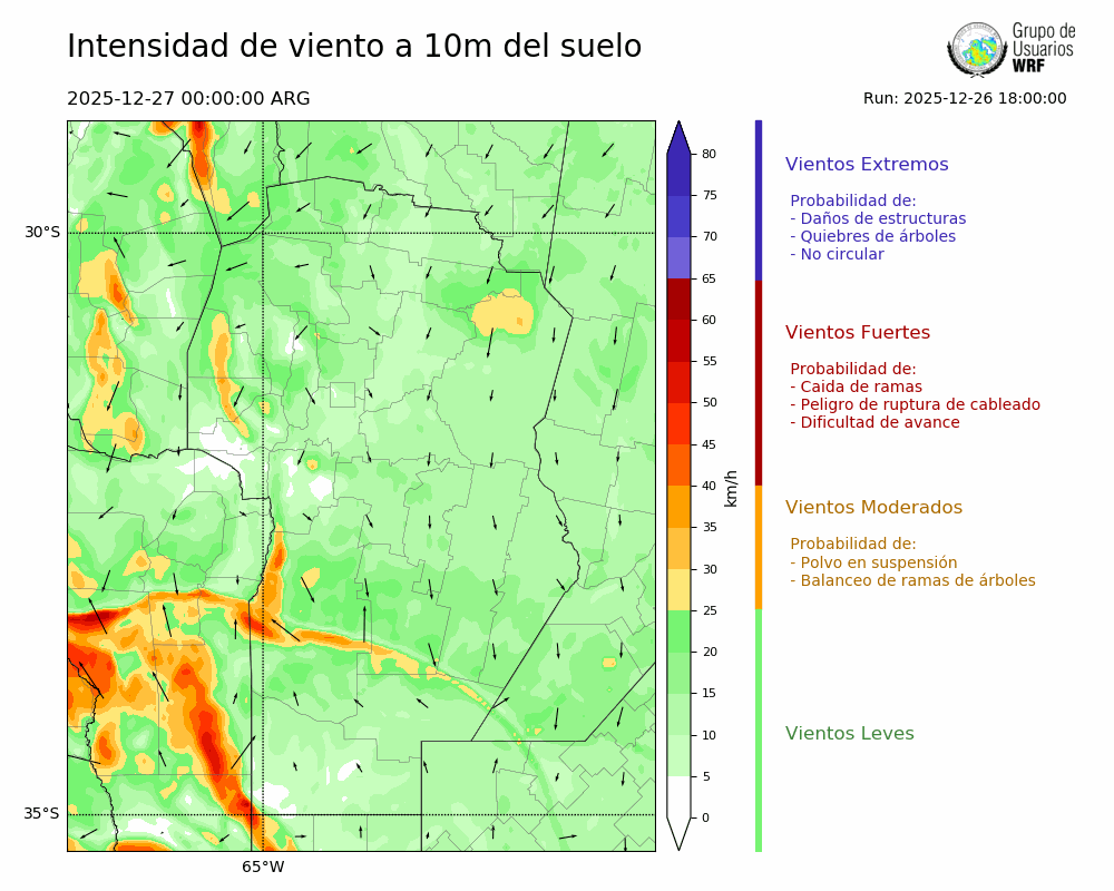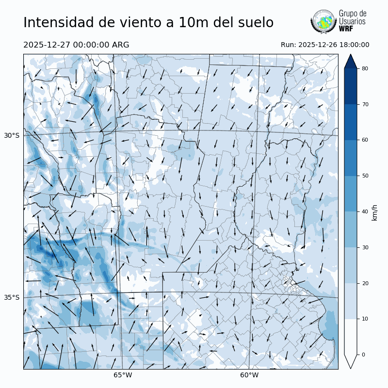 • Intensidad máxima: 13.64 km/h (27/12/2025 00hs.)