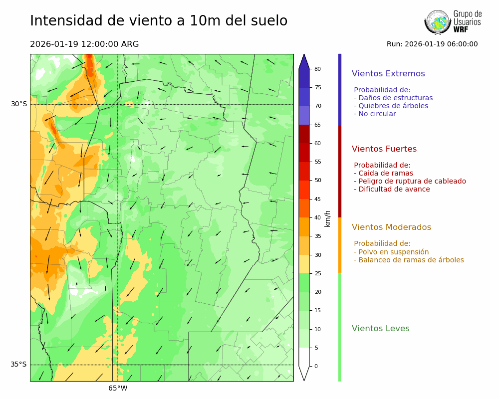 • Intensidad máxima: 20.86 km/h (19/01/2026 18hs.)