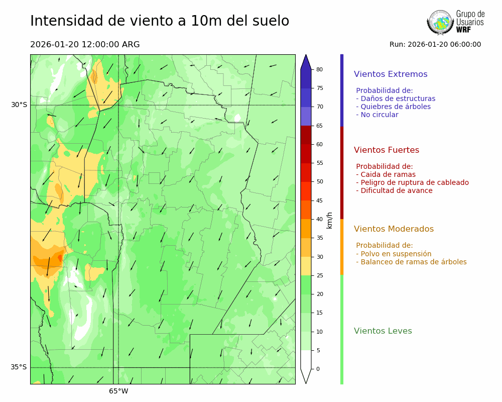 • Intensidad máxima: 18.91 km/h (20/01/2026 18hs.)