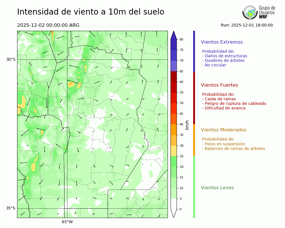 • Intensidad máxima: 14.54 km/h (02/12/2025 11hs.)