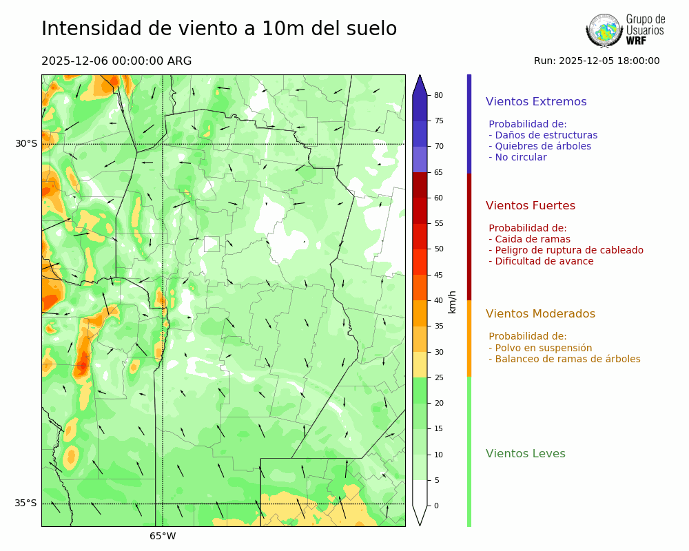 • Intensidad máxima: 14.58 km/h (06/12/2025 09hs.)