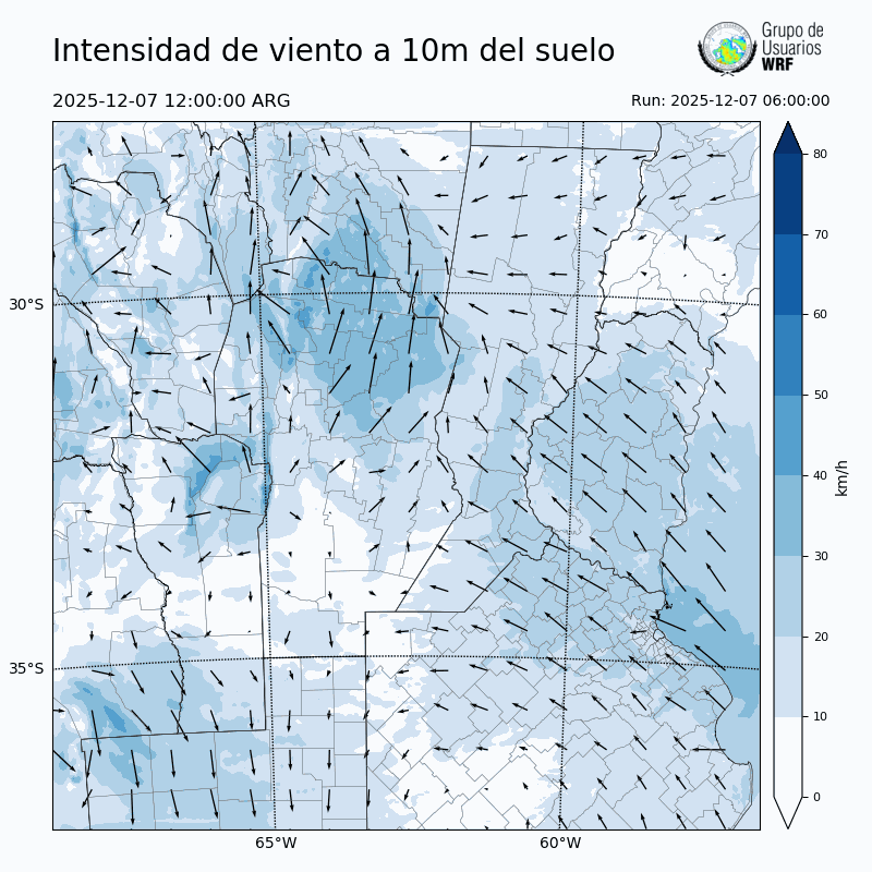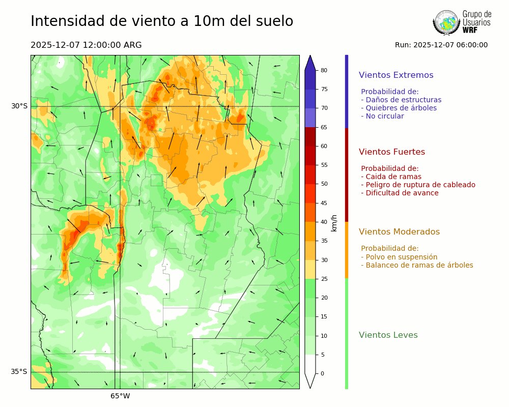 • Intensidad máxima: 7.07 km/h (08/12/2025 04hs.)