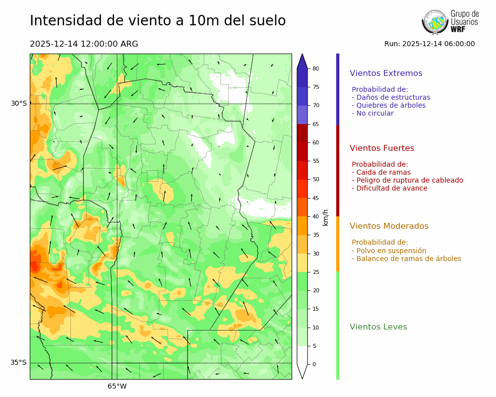 • Intensidad máxima: 14.70 km/h (14/12/2025 15hs.)