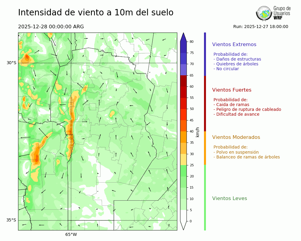 • Intensidad máxima: 6.51 km/h (29/12/2025 04hs.)