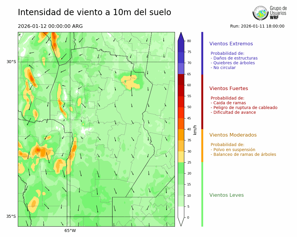 • Intensidad máxima: 19.80 km/h (12/01/2026 08hs.)