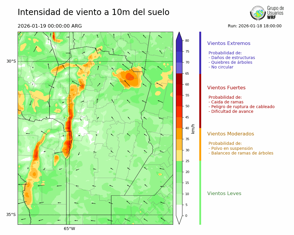 • Intensidad máxima: 17.68 km/h (19/01/2026 00hs.)